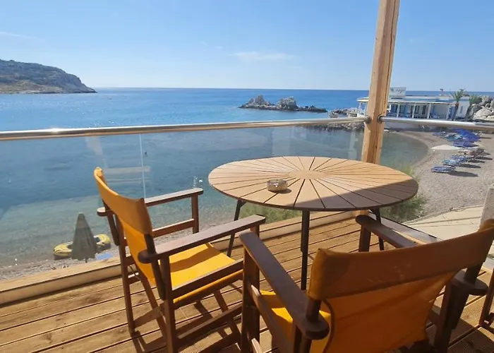 Oaspeții își pot pregăti cu ușurință propriile mese în o bucătărie complet echipată, dotată cu un ceainic electric, frigider și cuptor. Vila se află la o plimbare de aproape 20 de minute de Kapetanios Seafood Restaurant, oferind preparate din bucătăria greacă. Stația de autobuz Charaki se află, de asemenea, în imediata apropiere de cazarea pe malul mării.